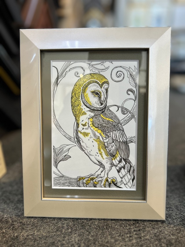 【サインペン画/梟】/額装無し/手書き/一点もの