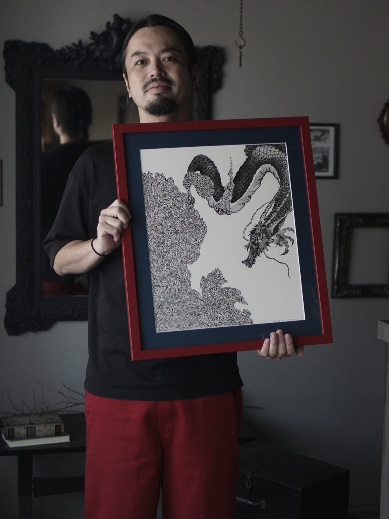 【サインペン画/龍】58.5㎝×50.5㎝/額装済/手書き/一点もの