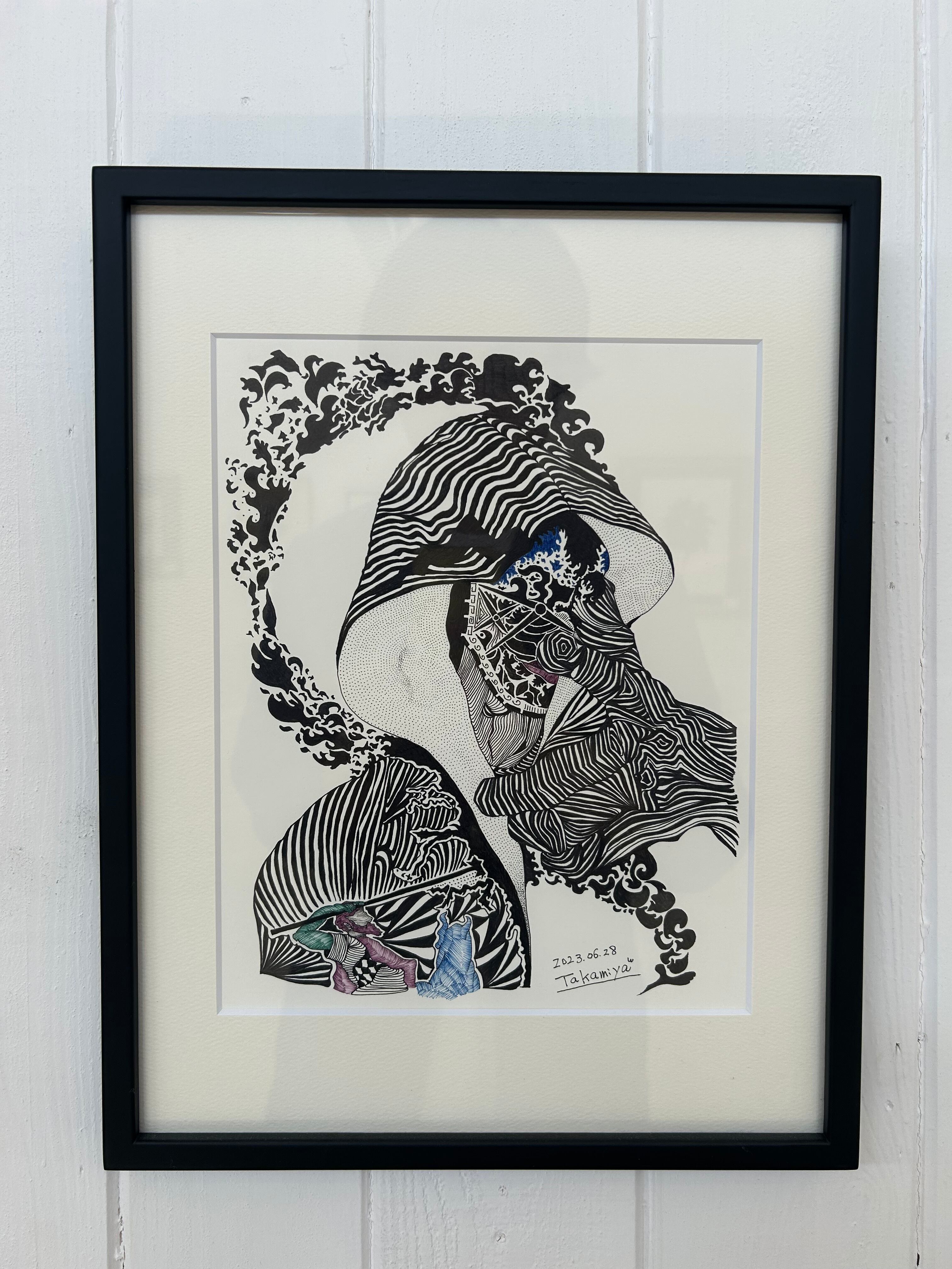 【サインペン画/ダークヒーロー】39.5㎝×30.5㎝/額装済/手書き/一点もの